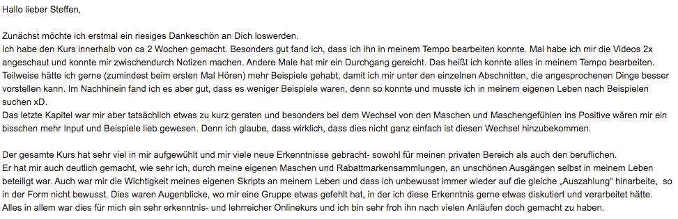 Hier findest du Feedback von meinen Kunden