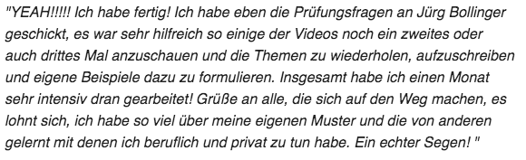 Die Lernvideos und die Übungen haben mir gezeigt, wie ich noch besser mit meinen Klienten umgehen kann, gerade wenn ich schwierige Themen ansprechen möchte.